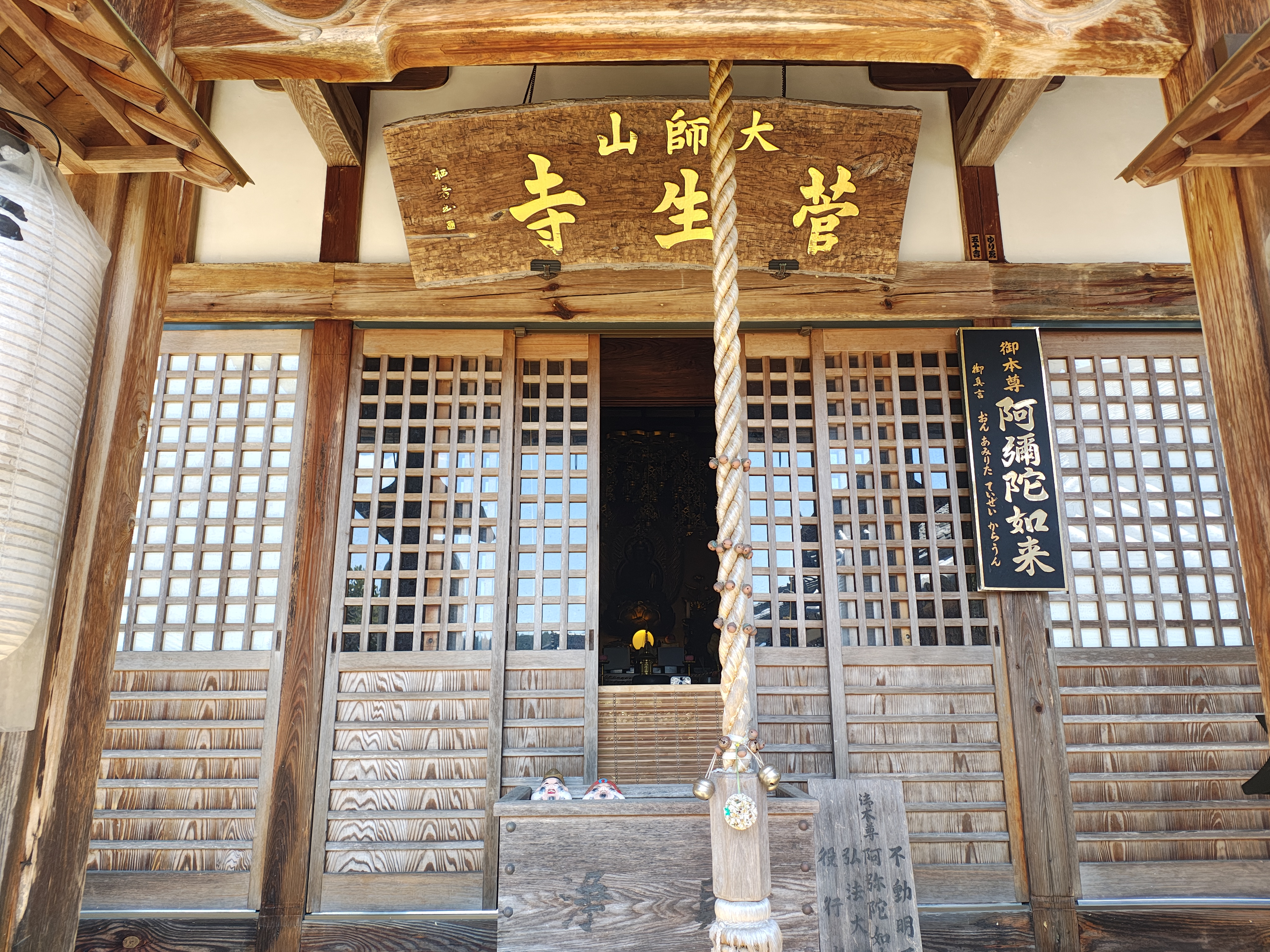 菅生寺本堂は、ご本尊阿弥陀如来をはじめ、不動明王、弘法大師、役行者をお祀りしています。